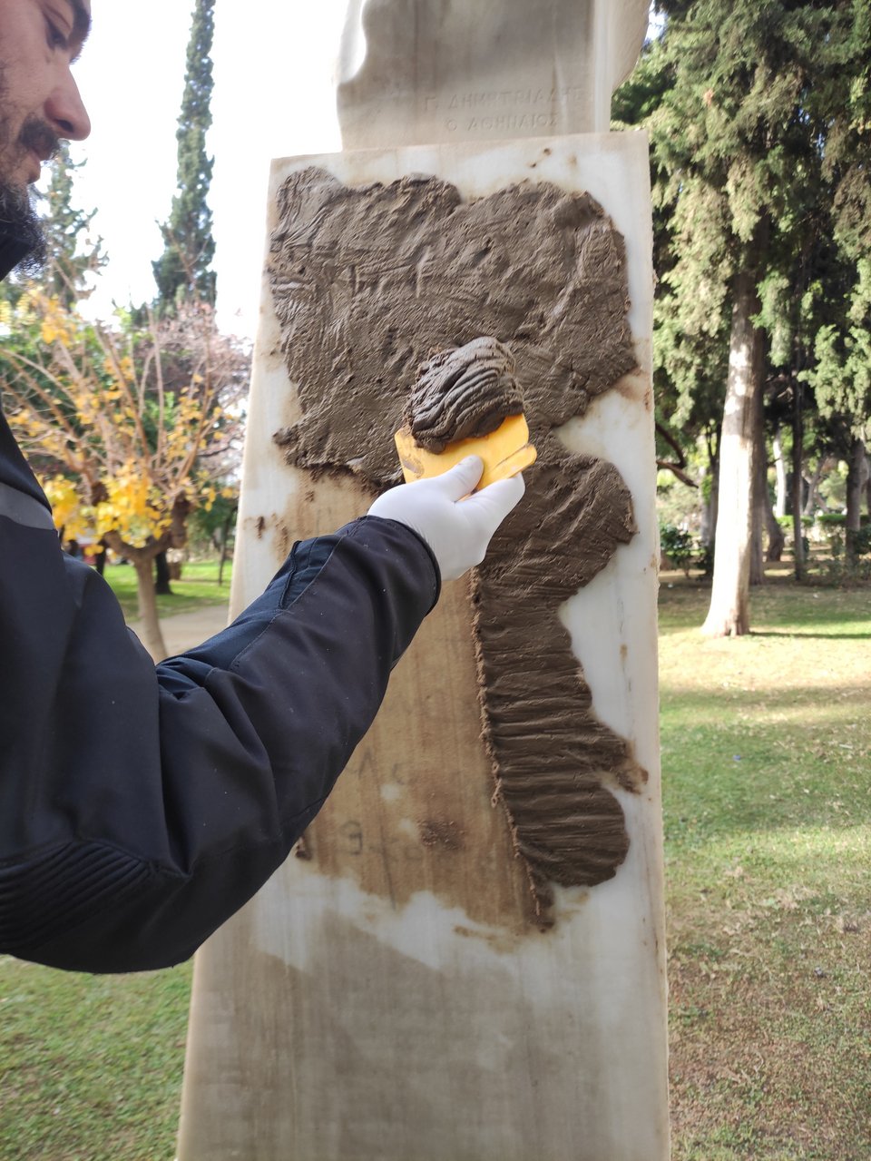 - Στον καθαρισμό από χρωστικές (γκράφιτι) και στην αποκατάσταση προστασίας με αντιγκράφιτι υλικό σε 5 γλυπτά (Πλάτωνας, Σήματα Δομών, Λορ. Μαβίλης, Π. Γύπαρης, Βασ. Όλγα), ενώ ξεκινά άμεσα ο καθαρισμός στο βάθρο του ανδριάντα του Θ. Κολοκοτρώνη, επί της οδού Σταδίου.