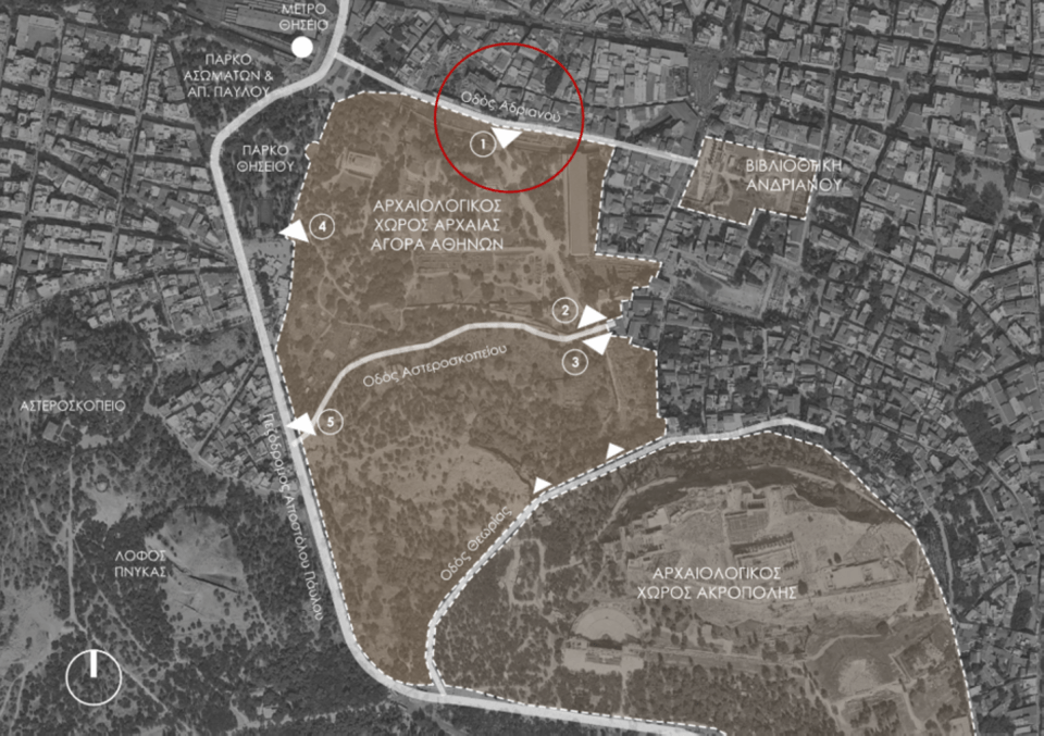 Το Υπουργείο Πολιτισμού δια της Εφορείας Αρχαιοτήτων Πόλης Αθηνών, στο πλαίσιο της πολιτικής του για την βελτίωση των παρεχομένων υπηρεσιών προς τους επισκέπτες και την ενδυνάμωση της εμπειρίας τους, προχωρεί στην αναβάθμιση των υποδομών, των εγκαταστάσεων εξυπηρέτησης του κοινού, αλλά και του αστικού εξοπλισμού στον αρχαιολογικό χώρο της Αρχαίας Αγοράς των Αθηνών. Το έργο αφορά στη συνολική ανάδειξη του αρχαιολογικού χώρου με επίκεντρο τη διαμόρφωση νέας πύλης εισόδου – εξόδου, επί της οδού Αδριανού, και στη βελτίωση της προσβασιμότητας στον χώρο.