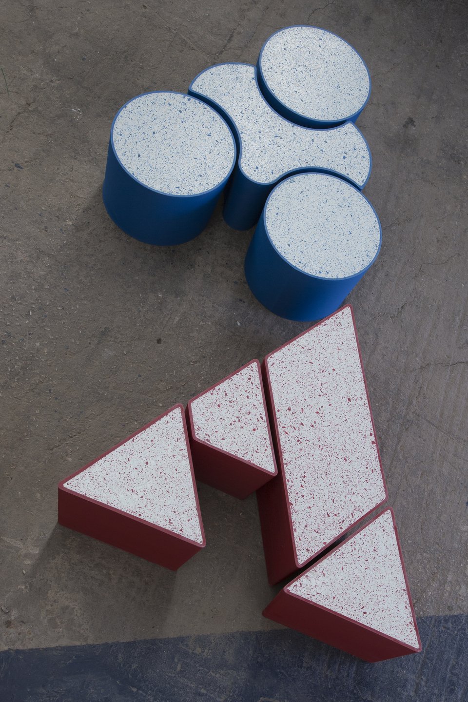 Τα δύο στοιχεία ενώνονται, σαν σε ένα μωσαϊκό, για να δημιουργήσουν ένα τρισδιάστατο προϊόν με μέλη που αποσπώνται και λειτουργούν ως καθίσματα.