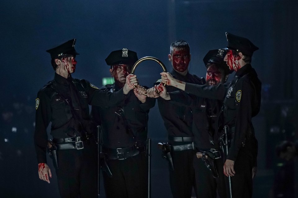 Αίμα, αστυνομικοί που θυμίζουν στρατό του Χίτλερ ή Κου Κλoυξ Κλαν, βασανιστήρια επί σκηνής, ήχοι εκκωφαντικοί, αστραπές και βροντές από σφαίρες και γρονθοκοπήματα. Και αναπάντεχες ανατροπές. Είδαμε το «Βros» του ρηξικέλευθου Καστελούτσι στη Στέγη.