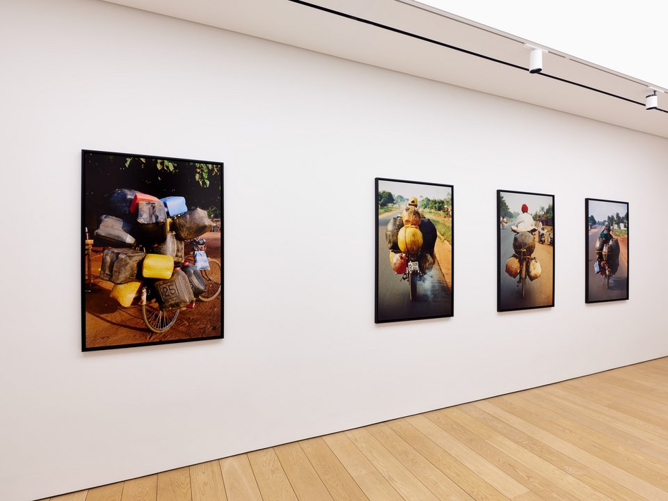 Στις φωτογραφίες που συνοδεύουν τα γλυπτά, βλέπουμε αυτές τις πραγματικότητες όπως είναι: σκούτερ και ποδήλατα στοιβαγμένα με δοχεία βενζίνης, διαδρομές γεμάτες κίνδυνο, πρόσωπα που κοιτούν μπροστά γιατί πίσω δεν έχει τίποτα. Ο Hazoumè δεν εξωραΐζει. Δεν εικονογραφεί. Καταγράφει μια πραγματικότητα τόσο πολιτική όσο και ποιητική.