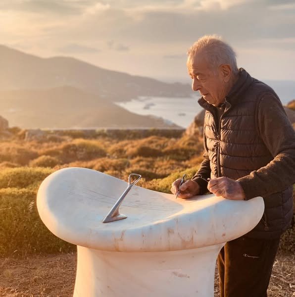 Όποιος έχει σταθεί μπροστά στο ηλιακό ρολόι που σχεδίασε ο Minas στη Φτελιά της Μυκόνου, ξέρει. Εκεί, πάνω στο κυκλαδίτικο ανάγλυφο, ανάμεσα σε φως, πέτρα και θάλασσα, ο Minas χάραξε τον ήλιο. Δημιούργησε μια κατασκευή που δεν δείχνει την ώρα απλώς με μηχανισμό, αλλά με φως. Το ηλιακό ρολόι του δεν ήταν gadget. Ήταν αρχιτεκτονική και αστρονομία μαζί — ένας συντονισμός του ανθρώπινου σώματος με τον ουρανό.