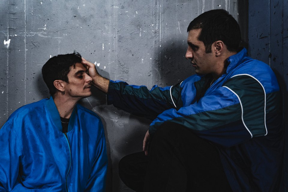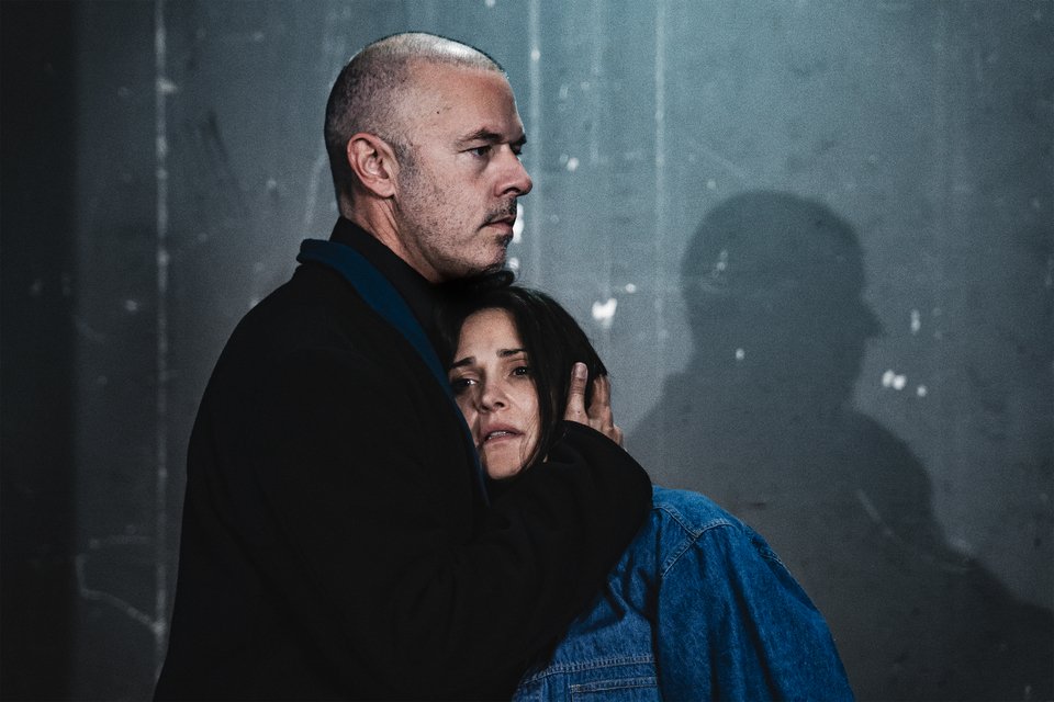 Μέσα σε έναν χώρο που μοιάζει με εγκαταλειμμένο ανελκυστήρα ή κελί ανάκρισης, με το φως να πέφτει κάθετα σαν ακτίνες χειρουργείου, ο Χρήστος Λούλης αγκαλιάζει διαδοχικά τα σώματα γύρω του. Τη Μαίρη Μηνά, τον Δημήτρη Καπουράνη, τον Νικολάκη Ζεγκίνογλου -κρατά απόσταση όμως ελέγχου ή φόβου από αυτό της Νατάσσας Εξηνταβελώνη.