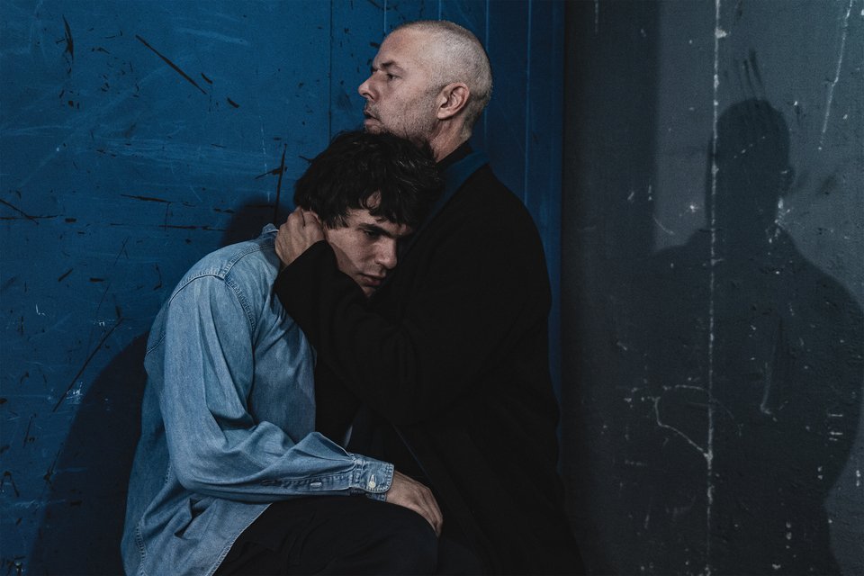 Οι φωτογραφίες της Γκέλυς Καλαμπάκα για την παράσταση που σκηνοθετεί ο Δημήτρης Καραντζάς και έρχεται από τις 5 Δεκεμβρίου στο Ίδρυμα Μιχάλης Κακογιάννης, όπως πάντα είναι σαν να σε σπρώχνουν μέσα στην αίθουσα, μέσα στην ατμόσφαιρα της σκηνής. Η αγκαλιά του Λούλη -πατρική, ψυχρή, εξουσιαστική- συμπυκνώνει τον ρόλο του Τίνκερ, του «γιατρού» ή φύλακα που καθορίζει ποιος θα «καθαριστεί» και ποιος θα αφανιστεί. Είναι η ίδια χειρονομία που θα μπορούσε να είναι χάδι ή στραγγαλισμός.
