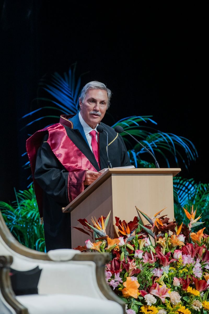 Ο Πρύτανης του Πανεπιστημίου Πειραιώς Μιχαήλ Σφακιανάκης περιέγραψε έναν άνθρωπο που «συνδυάζει τη γνώση με τη δράση και τη φρόνηση, έναν ηγέτη που δεν φοβάται να ανατρέψει κατεστημένα, παίρνοντας ρίσκα που οι περισσότεροι θα δίσταζαν να αναλάβουν. Έναν σύγχρονο homo universalis, πολυπράγμονα και οραματιστή, που μας θυμίζει ότι η αληθινή ηγεσία δεν μετριέται από τα κέρδη αλλά από το φως που αφήνει πίσω της».