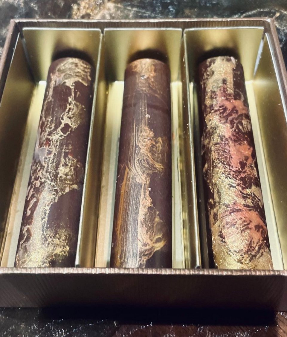 Ανάμεσά τους και οι σοκολάτες της Μίνας Αποστολίδη, της σοκολατοποιού που διαπρέπει στο Βέλγιο. Η βραβευμένη σοκολατοποιός Μίνα Αποστολίδη δημιουργεί αποκλειστικά για το Μ-Shop του Μεγάρου Μουσικής τρεις υπέροχες σοκολατένιες γεύσεις, αλατισμένο αμύγδαλο, πορτοκάλι και φιστίκι.