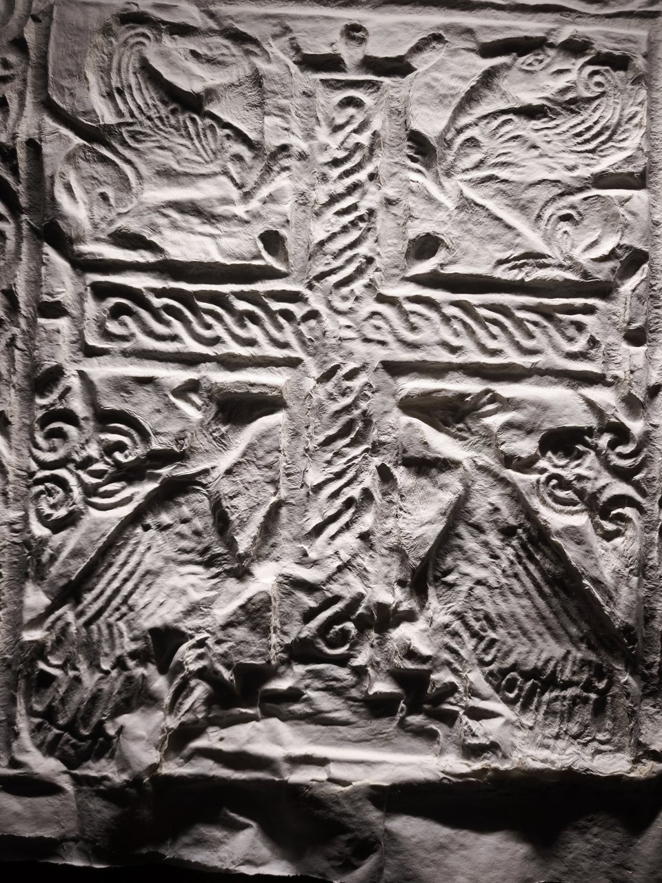 Στα έργα της, κάποια μοτίβα -όπως οι συστρεφόμενοι σταυροί, τα μυθικά ζώα, οι φυτικοί έλικες- μοιάζουν σχεδόν σαν να κουβαλούν πάνω τους διάσπαρτα ίχνη από τα ασημένια αντικείμενα του μουσείου. Δεν είναι ότι τα έργα δανείζονται μορφές· είναι ότι ο τρόπος που φωτίζονται, ο τρόπος που το μάτι τα ακουμπά με ακόμη νωπή την εικόνα του ασημιού, δημιουργώντας μια απροσδόκητη συνομιλία.