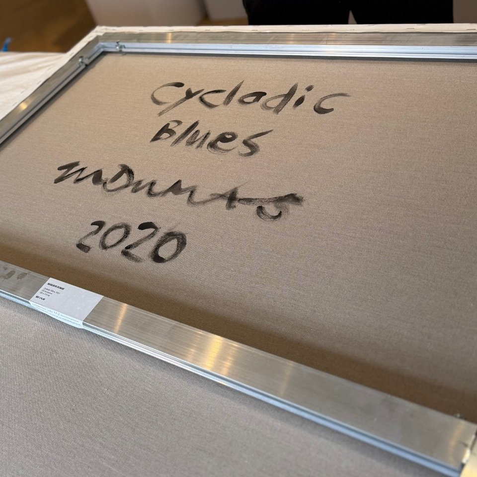 Άλλωστε το μπλε της έχει μια βαθιά μελαγχολία. Και όπως το φως που μπαίνει από τα καλυμμένα παράθυρα και τον εντυπωσιακό θόλο του δεύτερου ορόφου, έχει μια ήσυχη μπλε απόχρωση, αυτό το μπλε του τίτλου της έκθεσης γίνεται διαρκής υπόμνηση του προαιώνιου και του θλιμμένου ενός σώματος, ενός κόσμου που αλλάζει.