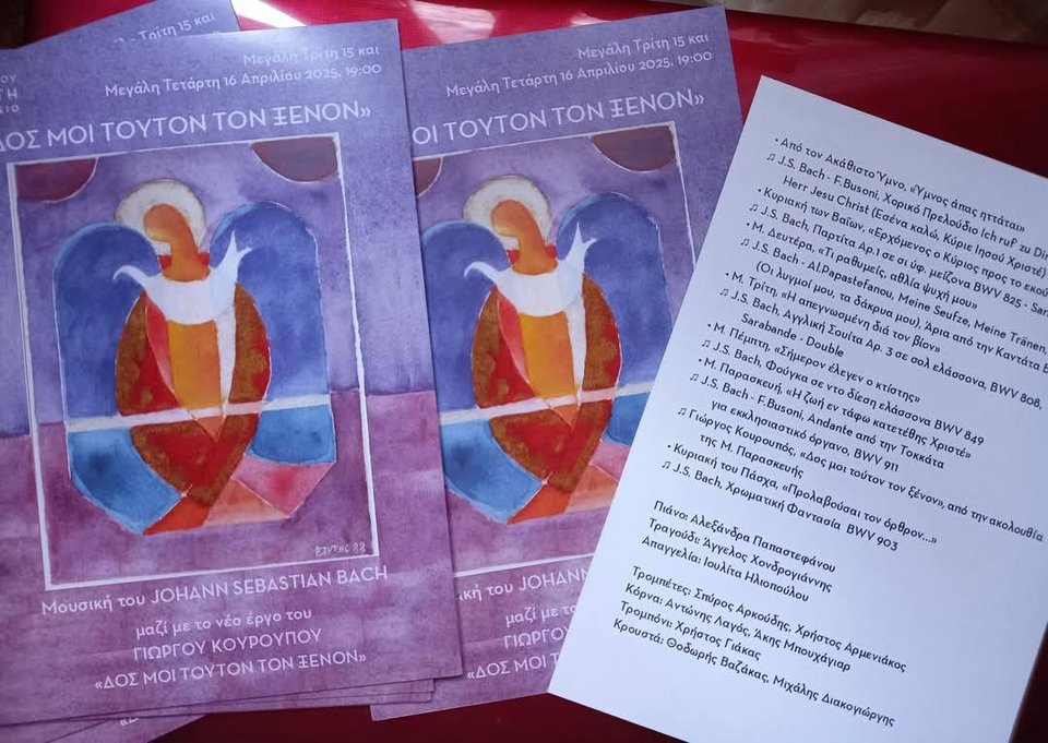 Μεγάλη Τρίτη και Τετάρτη, κάτω από τα πορτρέτα του νομπελίστα ποιητή, ξετυλίχθηκε ένα μοναδικό ρεσιτάλ, όπου ο Μπαχ συνομιλεί με το Θείο Πάθος και η νέα σύνθεση του Γιώργου Κουρουπού αντήχησε σαν σεισμική προσευχή στο Σπίτι-Μουσείο του Οδυσσέα Ελύτη.