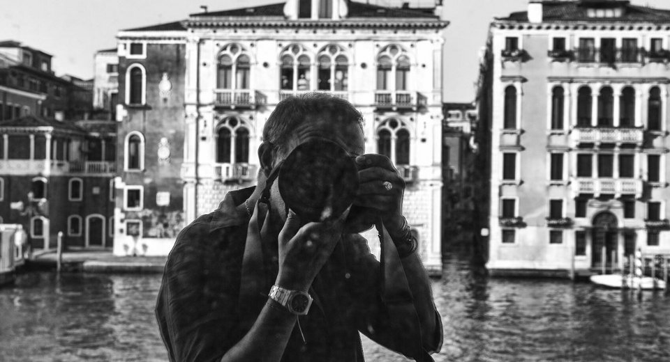 Όταν τον προσκάλεσε το Fondazione dell’Albero d’Oro αποφάσισε να επικεντρωθεί στην περιοχή πέριξ του palazzo Vendramin Grimani, στο San Polo. Eγινε παρατηρητής και καταγραφέας ανθρώπων και σκηνών. Και το έκανε χρησιμοποιώντας ασπρόμαυρο φιλμ, ένα εγχείρημα τολμηρό, καθώς μπορεί να στερήσει σημαντικές στιβάδες του τοπίου και της ανθρωπογεωγραφίας της Βενετίας. Από την άλλη, μπορεί να αποτελέσει ένα έξτρα κάτοπτρο που θα πολλαπλασιάσει και βαθύνει αυτό που εικονίζεται στη φωτογραφία.