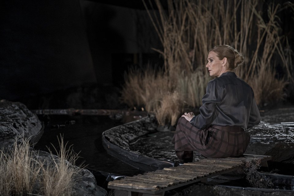 Το σκηνικό της παράστασης, ένα βαλτώδες δυστοπικό τοπίο με αγρωστώδη φυτά και νερό, αντανακλά την ερημιά της ανθρώπινης ύπαρξης. Στην παράσταση η Αφροδίτη κρατώντας μία κάμερα, και μέσα σε υποβλητική μουσική, κινηματογραφεί και αναμεταδίδει ζωντανά σε μονοπλάνο όλη τη δράση, παρουσιάζοντας χωρίς μοντάζ στο κοινό πτυχές και λεπτομέρειές της. Ο θίασος κινείται σε όλη την έκταση του αρχαίου Θεάτρου, μέσα, γύρω και πίσω από την ορχήστρα, ανάμεσα στο όνειρο και την πραγματικότητα, ιχνηλατώντας τη μετ’ εμποδίων διαδρομή ανάμεσα στην αγνότητα και τη λαγνεία, ανάμεσα στην άγνοια και τη γνώση, ανάμεσα στην ίδια την πτώση του ανθρώπου και την εξιλέωσή του.