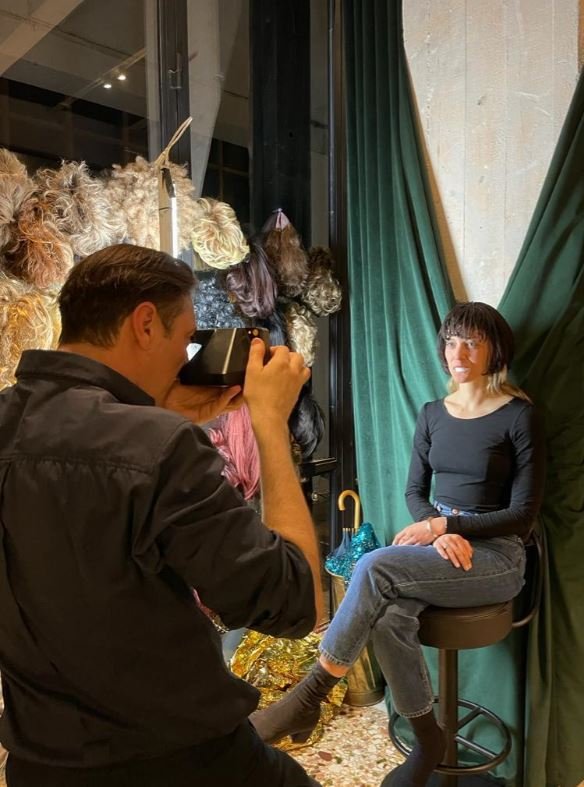 «Όταν μου το πρότεινε το Μουσείο Κυκλαδικής Τέχνης είπα ναι, πάμε να κάνουμε την ανατροπή», λέει ο Δημήτρης Αντωνίτσης που δεν σταματά να μιλά για την γενναιοδωρία του Ευριπίδη Λασκαρίδη. Επί έξι ώρες εργαζόταν μέσα στο χώρο του Pharaoh, μεταφέροντας μέρος των υλικών που χρησιμοποιεί στις μεταμορφώσεις του επί σκηνής: πρόσθετες μύτες, περούκες, δόντια… Και μετά κάλεσε τους Young Patrons του Μουσείου Κυκλαδικής Τέχνης -γιατί για αυτούς οργανώθηκε το δείπνο από το μουσείο- να φορέσουν ό,τι θέλουν ενώ τους φωτογράφιζε ο ίδιος με μια μηχανή Polaroids. Αφαίρεσαν το τραπέζι που βρίσκεται στην εσοχή της βιτρίνας και το μεταμόρφωσαν σε έναν φωτογραφικό θάλαμο με φόντο την βελούδινη πράσινη κουρτίνα-θα μπορούσε να είναι πράξη τέχνης σε μουσείο φυσικά.