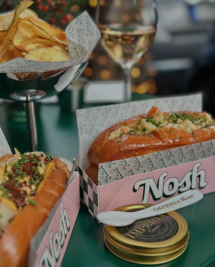 Το Nosh ανήκει στον Λίνο Ιερίδη, γνωστό από τη θητεία του στον χώρο του φαγητού με έμφαση στη λεπτομέρεια και στην ισορροπία. Βασιλιάς εδώ είναι το lobster roll, στο χάρτινο κουτάκι του και με όλες τις σάλτσες που μου θυμίζουν αυτή την εκπληκτική καντίνα κάτω από τη γέφυρα του Μπρούκλιν ή αυτή τη συγκλονιστική επικράτεια του αστακού στο Τσέλσι Μάρκετ.