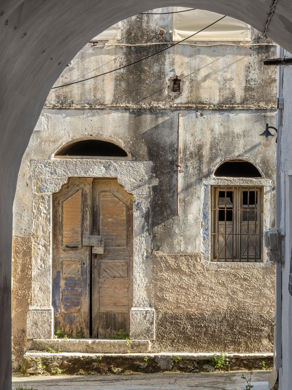 Η Καλαμωτή δεν είναι απλώς ένα καλοδιατηρημένο μαστιχοχώρι. Είναι ένα οικοσύστημα γεωμετρίας και ζωής: δρόμοι που οδηγούν στο πουθενά, σπίτια δεμένα το ένα με το άλλο σαν αλυσίδα, σκιές που πέφτουν συμμετρικά πάνω στις προσόψεις. Ο Γερόλυμπος δεν αναζητά το τουριστικό κάδρο· δεν απομονώνει, δεν εξωραΐζει. Φωτογραφίζει με την ακρίβεια ενός αρχιτέκτονα και τη στοχαστικότητα ενός ποιητή σαν να μετράει τον χρόνο με το φως.