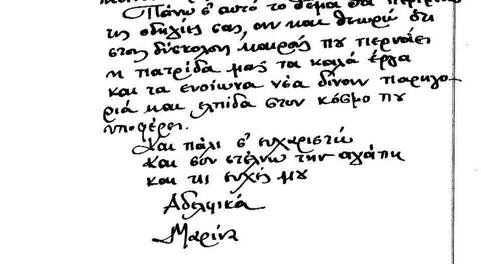 Με συγκίνηση αλλά και ανοίγοντας το αρχείο του, το Ιδρυμα Σταύρος Νιάρχος αποχαιρετά την Μαρίνα Λαμπράκη Πλάκα. Και φέρνει στο φως τρεις επιστολές της, που όπως πάντα αγαπούσε να γράφει η ίδια.
