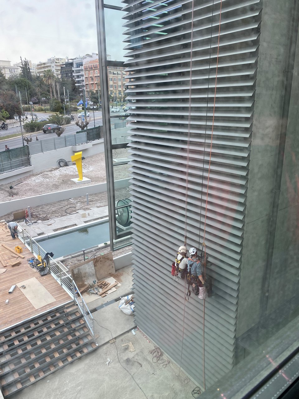 Καθώς εικόνες των έργων Τέχνης και όψεις της νέας Εθνικής Πινακοθήκης κυριαρχούν στη δημόσια σφαίρα, αξίζει να ρίξουμε μια ματιά στην όψη πίσω από τους προβολείς. Στον άθλο των εργατών και των ανθρώπων που δούλεψαν για να ολοκληρωθεί το κτιριακό περιβάλλον και ο κήπος.