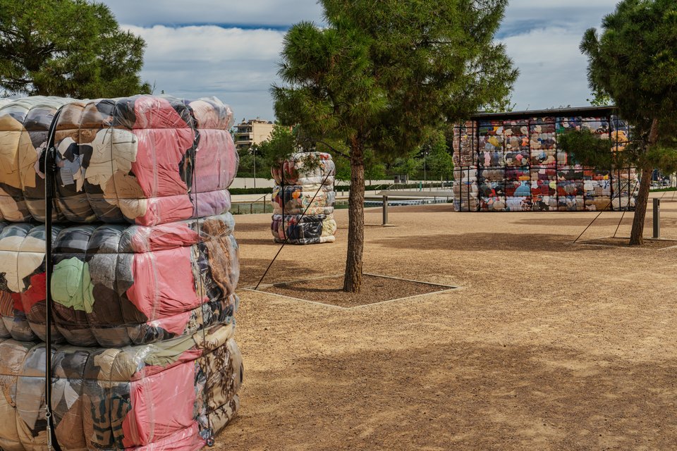Είναι τόσο δύσκολο να παρουσιάσεις ένα σύγχρονο έργο δημόσιας τέχνης. Και μάλιστα σε ένα χώρο, τοπόσημο, που έχει επενδυθεί με συγκεκριμένες ποιότητες τα τελευταία χρόνια: ανεμελιά, διαφυγή, προσφορά, σύνδεση με τη φύση. Το σκέφτομαι καθώς περπατώ γύρω από τον μεγάλο κύβο με δεμάτια παλιών ρούχων που έχει μπει εκεί που πατούσαν τα τεράστια πόδια της αράχνης της Λουίζ Μπουρζουά, της Maman. Στο χωμάτινο πεδίο της Εσπλανάδα όπου πέρυσι τέτοιες μέρες παρουσιάστηκε το εμβληματικό γλυπτό μέσα από συνεργασία του ΝΕΟΝ με το ΚΠΙΣΝ και που παρέμεινε ως έδρα ενός μεγάλης κλίμακας έργου τέχνης κάθε χρονιά.