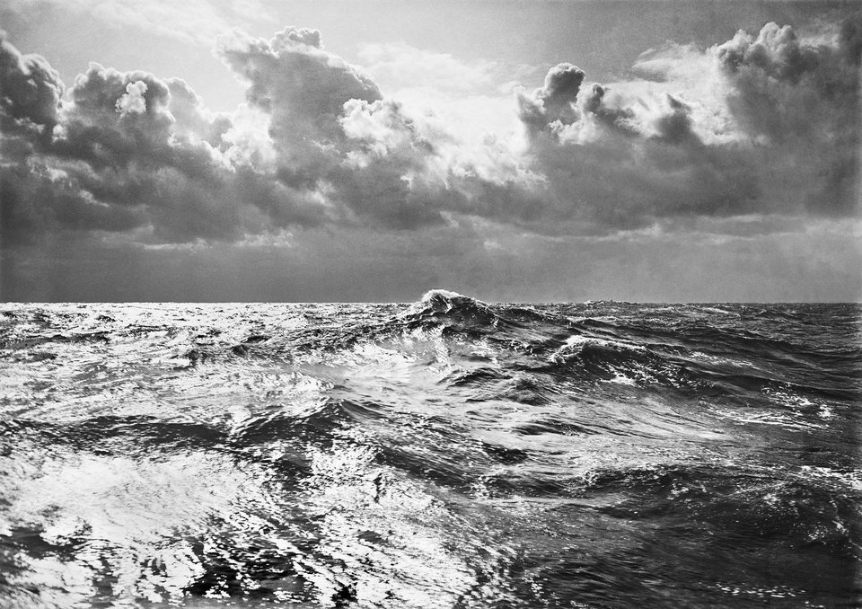 Ακόμα και μέσα από το διαδίκτυο, με τη μεσολάβηση της οθόνης που με τη φωτεινότητά της αλλοιώνει, είναι αδύνατο να μην μείνεις έκθαμβος μπροστά στη δύναμη της εικόνας. Το γλυπτό ανάγλυφο της θάλασσας, σαν πτυχώσεις αρχαιοελληνικού αγάλματος, και οι αμέτρητες ανταύγειες του ασημιού στη φωτογραφία που έβγαλε στη θάλασσα μεταξύ Σικελίας και Τυνησίας ήδη από το 1912. Το χρυσό πέπλο που πλαισιώνει τον Παρθενώνα, σε κάθε λήψη, γύρω από ένα τοπίο που μοιάζει ζοφερό.