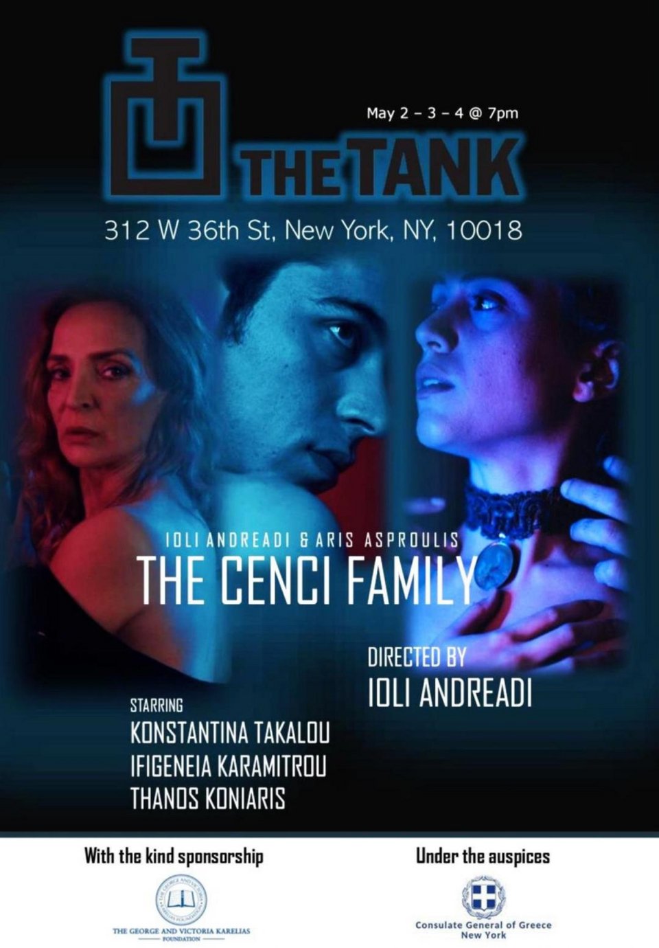 Η Ιόλη Ανδρεάδη σκηνοθετεί για πέμπτη συνεχή σεζόν στη Νέα Υόρκη. «THE CENCI FAMILY» ονομάζεται η παράσταση η οποία εντάσσεται στο φετινό πλούσιο ρεπερτόριο του THE TANK THEATER και παρουσιάζεται στο νεοϋρκέζικο κοινό με αγγλικούς υπέρτιτλους, στην Κεντρική Σκηνή του θεάτρου στις 2, 3 και 4 Μαΐου .
