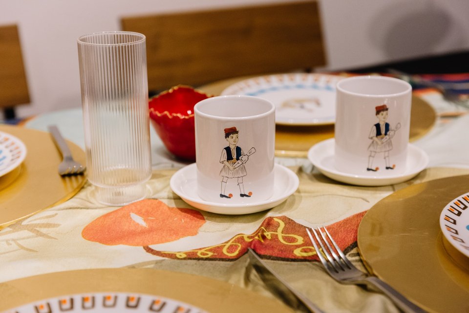 Για το Πωλητήριο του Μουσείου Κυκλαδικής Τέχνης ο Κακανιάς δημιούργησε τέσσερα διαφορετικά σχέδια. Αυτό με το τσολιαδάκι που αγκαλιάζει το κυκλαδικό ειδώλιο το συναντάμε στις κούπες και σε ένα πιάτο, ενώ τα υπόλοιπα τρία μόνο στα πιάτα, όλα πορσελάνινα.
