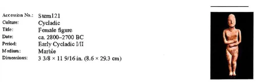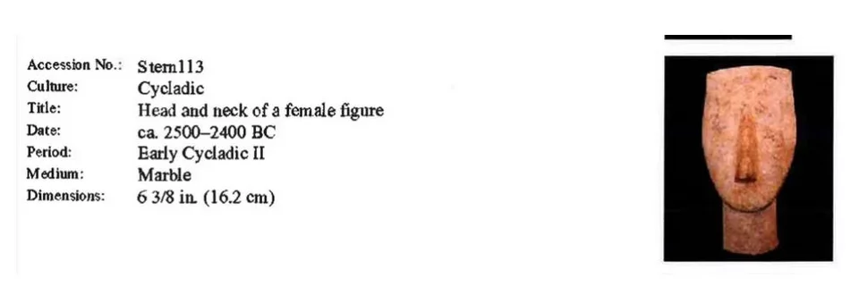 Δεν υπάρχει αναφορά στο δημοσίευμα για τον τρόπο που απέκτησε τις αρχαιότητες ο Στερν, γίνεται αναφορά όμως σε μια δήλωση της Λίνας Μενδώνη προ καιρού ότι το ΥΠΠΟ δεν έχει ως τώρα στη διάθεσή του στοιχεία ότι οι κυκλαδικές αρχαιότητες της Συλλογής βγήκαν παράνομα από τη χώρα.