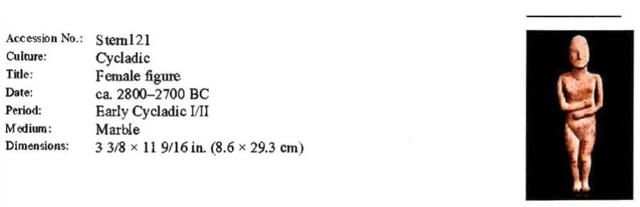 Θυμίζουμε ότι, όπως έγινε ξαφνικά γνωστό, μέσω συνεδρίασης του υπουργικού συμβουλίου στις 30 Αυγούστου, μια συλλογή 161 κυκλαδικών αρχαιοτήτων, άγνωστων ακόμα και στο ΥΠΠΟ, που ανήκαν στον Λέοναρντ Στερν, θα εκτεθούν στο Μητροπολιτικό Μουσείο και σταδιακά στην Ελλάδα, με τη διαρκή υπόμνηση ότι ανήκουν στην ελληνική Πολιτεία.