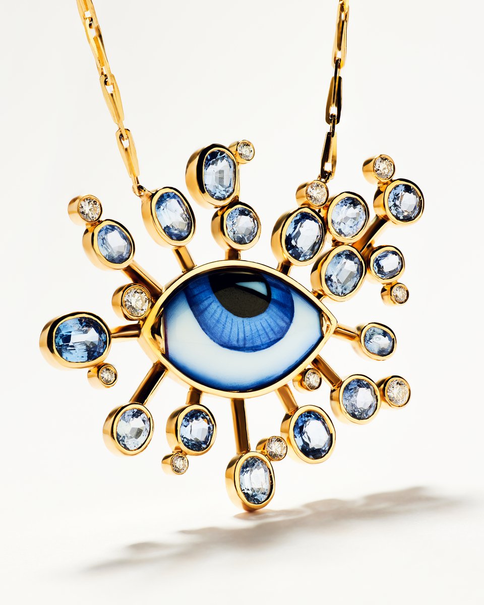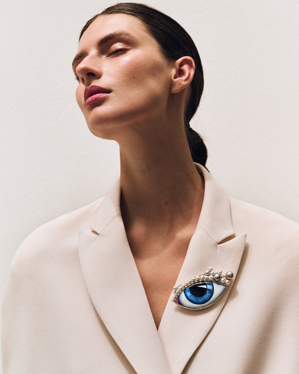 Η δημιουργός γιορτάζει φέτος τα 25 χρόνια του οίκου της με μια νέα συλλογή - μια επαναγέννηση της εμβληματικής «Tu Es Partout», της συλλογής που έκανε το μάτι φυλαχτό παγκόσμιο. «Ήθελα να δοκιμάσω τον εαυτό μου: Πώς αλλιώς μπορεί να σχεδιαστεί το μάτι ξανά, διαφορετικά, αλλιώτικα;» λέει. Η αφορμή ήρθε ύστερα από ένα ταξίδι στη Βιρμανία, εκεί όπου, όπως θυμάται, «άπλωσαν μπροστά μου εκατοντάδες μοναδικές πέτρες, όλες one-off, καμία ίδια με την άλλη». Τις πήρε μαζί της, τις άπλωσε στο τραπέζι του στούντιο, και τότε άρχισε να «βλέπει» τα νέα μάτια.