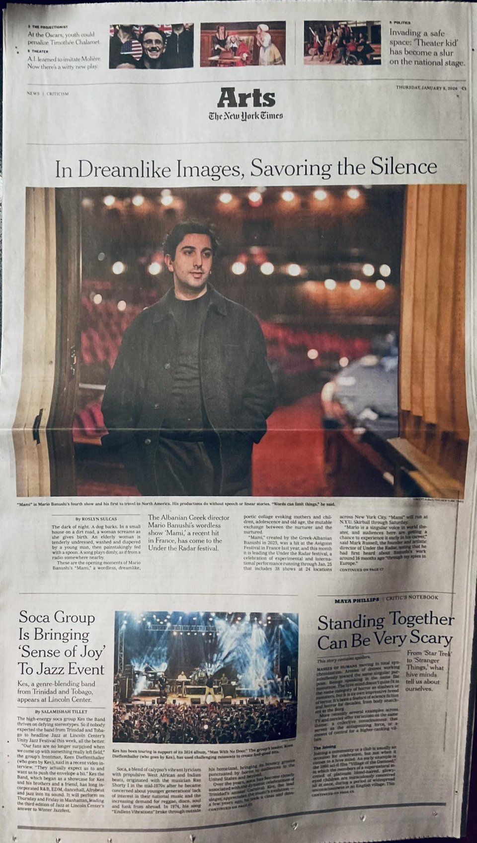 Στη Νέα Υόρκη από τις 7 ως τις 10 Ιανουαρίου 2026, θεατές από διαφορετικές πολιτείες θυμούνται ξαφνικά το χωριό τους βλέποντας το ΜΑΜΙ. Μια curator από τη Σικελία αναγνωρίζει τις τελετουργίες της ζωής της. Ένας σκηνοθέτης από την Αδελαΐδα βρίσκει τον εαυτό του σε έναν δημιουργό από την Αθήνα και τα Τίρανα. Το θέατρο του Mario Banushi δεν ανήκει σε γεωγραφία. Ανήκει στο σώμα.