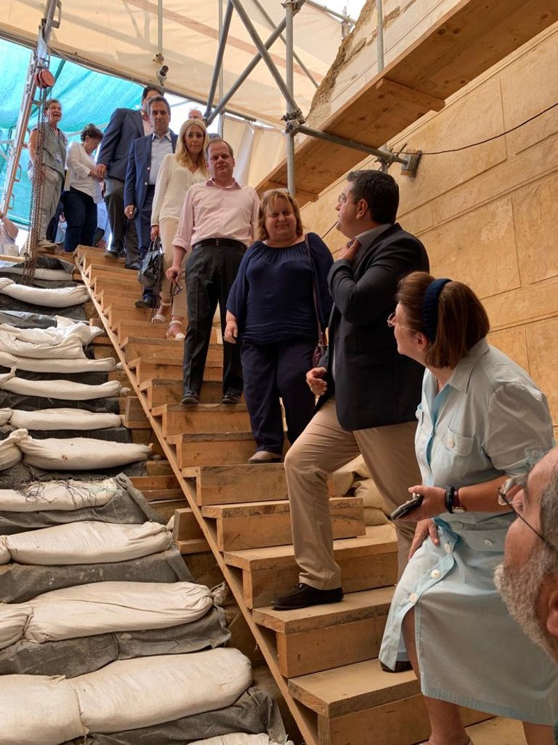 Ευρεία σύσκεψη με όλους τους εμπλεκόμενους φορείς πραγματοποίησε η Λίνα Μενδώνη με θέμα, τον προγραμματισμό εκτέλεσης του έργου, το οποίο εκπονείται στο πλαίσιο του ΠΕΠ Κεντρικής Μακεδονίας, ΕΣΠΑ 2014-2020. Συζητήθηκε επίσης ο προγραμματισμός των επόμενων σταδίων ανάδειξης του μνημείου και του ευρύτερου αρχαιολογικού χώρου. Η κ. Μενδώνη ζήτησε από τις υπηρεσίες την επίσπευση των εργασιών και την αυστηρή τήρηση των χρονοδιαγραμμάτων.