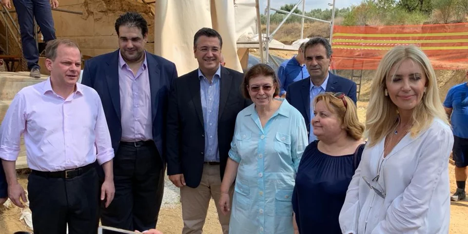 Τον Τύμβο Καστά στην Αμφίπολη επισκέφθηκε η υπουργός Πολιτισμού Λίνα Μενδώνη, μαζί με τον υπουργό Υποδομών και Μεταφορών Κώστα Καραμανλή, τους υφυπουργούς Εσωτερικών και Αγροτικής Ανάπτυξης και τον περιφερειάρχη Κεντρικής Μακεδονίας. Eδωσε μάλιστα οδηγίες για το πρώτο εύρημα που θα δει το κοινό από τον τάφο.