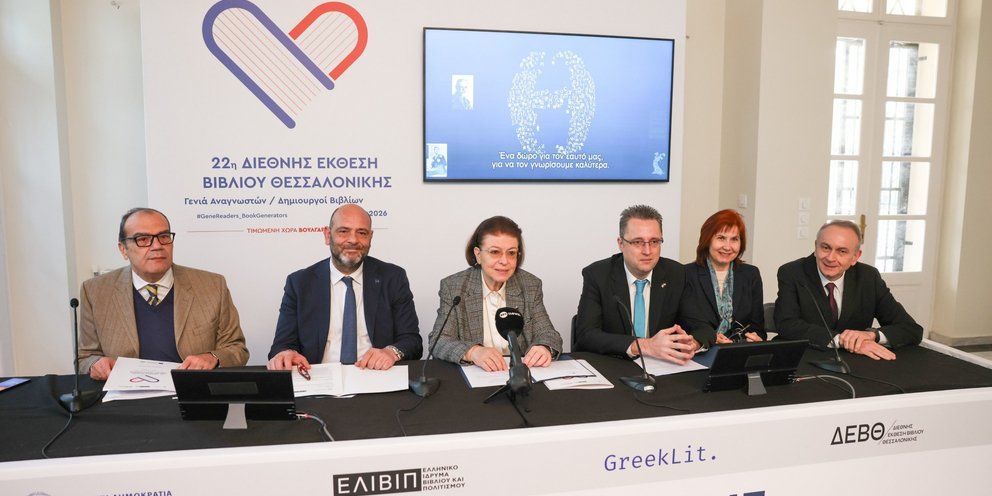 Επίσης, τους βασικούς άξονες της 22ης Διεθνούς Έκθεσης Βιβλίου Θεσσαλονίκης [ΔΕΒΘ], η οποία θα πραγματοποιηθεί από την Πέμπτη 7 μέχρι και την Κυριακή 10 Μαΐου 2026 με θέμα «Γενιά Αναγνωστών / Δημιουργοί Βιβλίων» [GeneReaders_BookGenerators] και τιμώμενη χώρα τη Βουλγαρία.