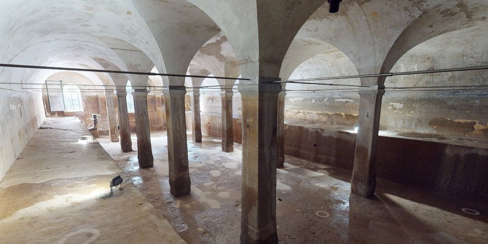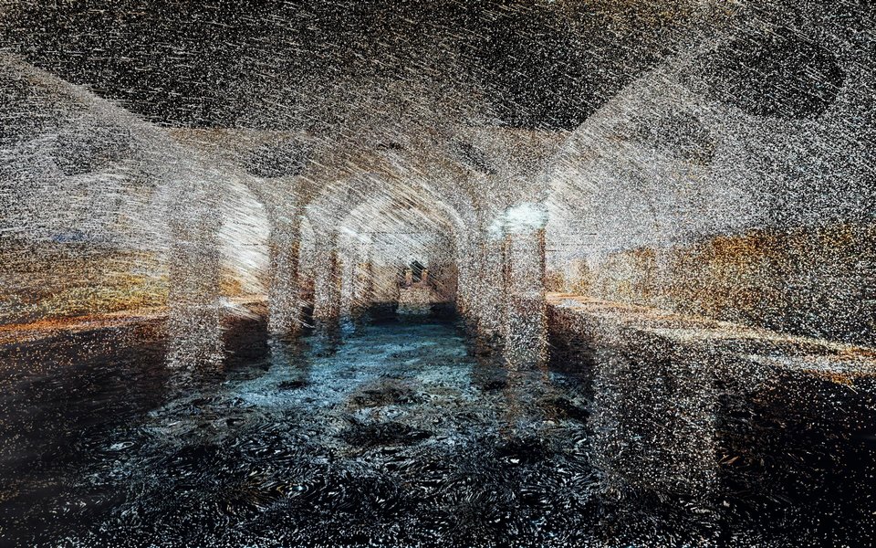 Το κοινό παρακολουθεί την εμπειρία χωρίς να εισέρχεται στον χώρο, διατηρώντας μια ιδιαίτερη σχέση παρατήρησης με το εσωτερικό του υδραγωγείου.