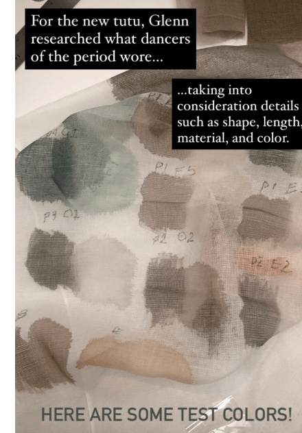 Ο Πίτερσεν ερεύνησε τα ρούχα που φορούσαν οι χορεύτριες το 1881, εποχή που περίπου ξεκίνησε η διαδικασία δημιουργίας του έργου από τον Ντεγκά, τα αγαπημένα υλικά, τις μορφές. Μελέτησε όμως και το σύμπαν από χορεύτριες που συναντά κανείς στο έργο του Ντεγκά -εντοπίζοντας μάλιστα κάποιες ασυνέπειες στις απεικονίσεις του σε σχέση με τα ρούχα που προτιμούσαν οι χορεύτριες, τις υφές και τα μήκη.