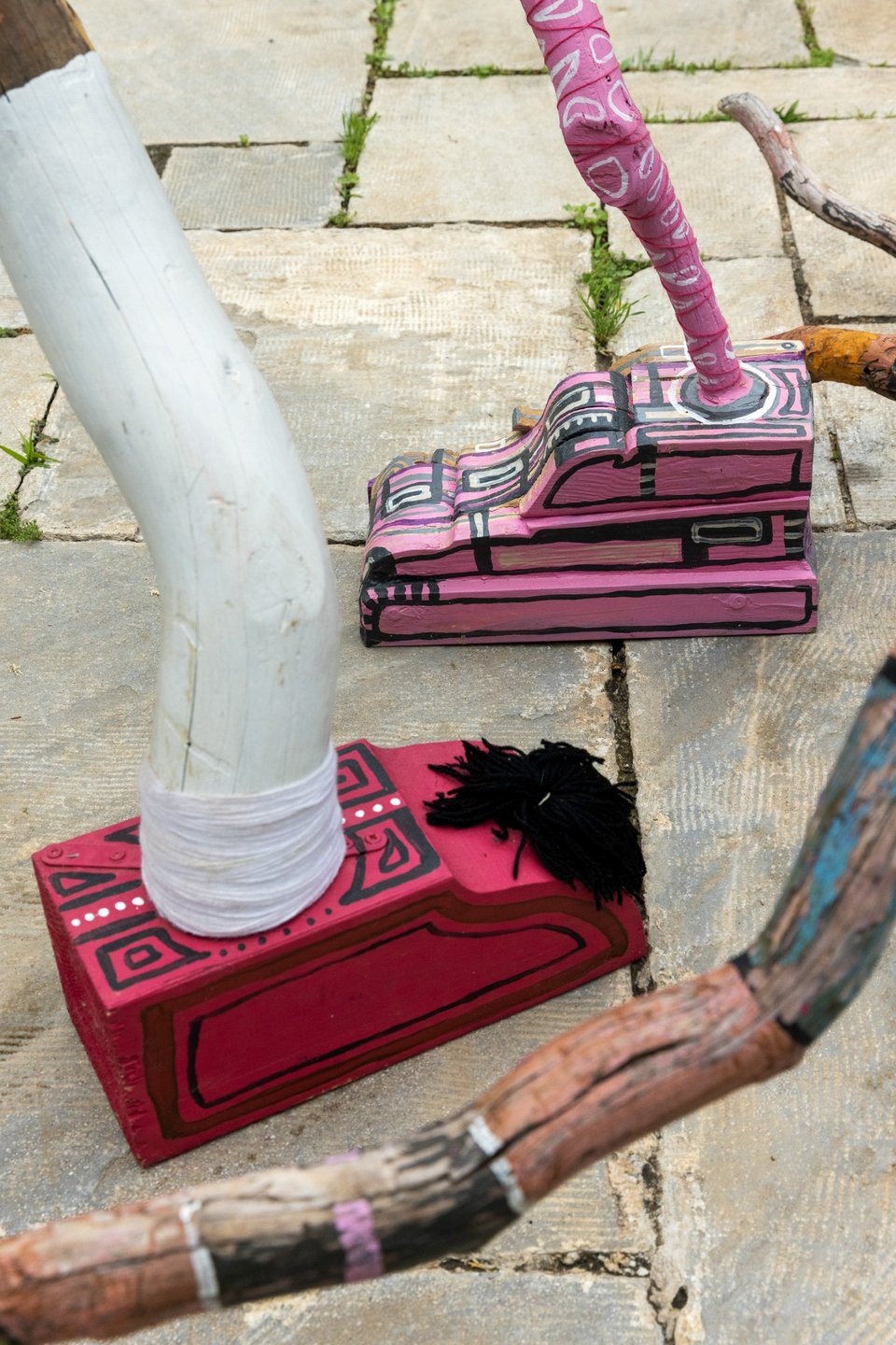 Ζωγραφικά έργα, γλυπτά από ξύλα που βρέθηκαν στον κήπο του σπιτιού, παρεμβάσεις ακόμη και σε έπιπλα της κατοικίας, συνθέτουν ένα περιβάλλον έκθεσης, όχι μόνο εικαστικής, αλλά της ίδιας της προσωπικότητας της Demi Kaia.