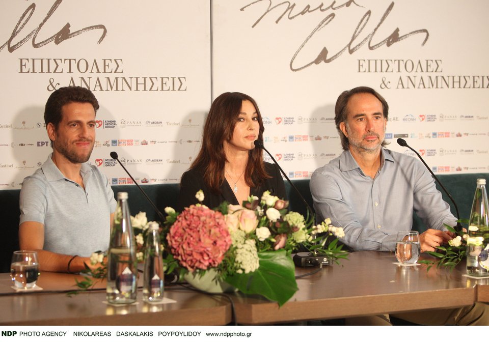 «Πολύ χαίρομαι που είμαι στη χώρας σας. Την αγαπώ πολύ, το ξέρετε καλά αφού έρχομαι συνέχεια. Θα είναι τρία πολύ έντονα βράδια. Και για εμένα την ίδια θα είναι κάτι εντελώς καινούργιο. Όπως έχω ξαναπεί, όταν ο Τομ Βολφ μου πρότεινε τον ρόλο, στην αρχή τρομοκρατήθηκα αλλά δεν μπορούσα να αρνηθώ. Η σχέση με το κοινό στο θέατρο είναι εντελώς διαφορετική συγκριτικά με τον κινηματογράφο. Eίναι άμεση. Και αυτό ακριβώς μου συνέβη κι εμένα όταν διάβασα τα γράμματα της Μαρίας Κάλλας. Είναι γεμάτα συναίσθημα. Οπότε είπα το ναι. Έχουμε παίξει την παράσταση στην Ιταλία και την Γαλλία και τώρα είμαστε εδώ στην Αθήνα. Και μας περιμένουν και άλλες χώρες στη συνέχεια», είπε αρχικά η Μόνικα Μπελούτσι στην συνέντευξη τύπου.