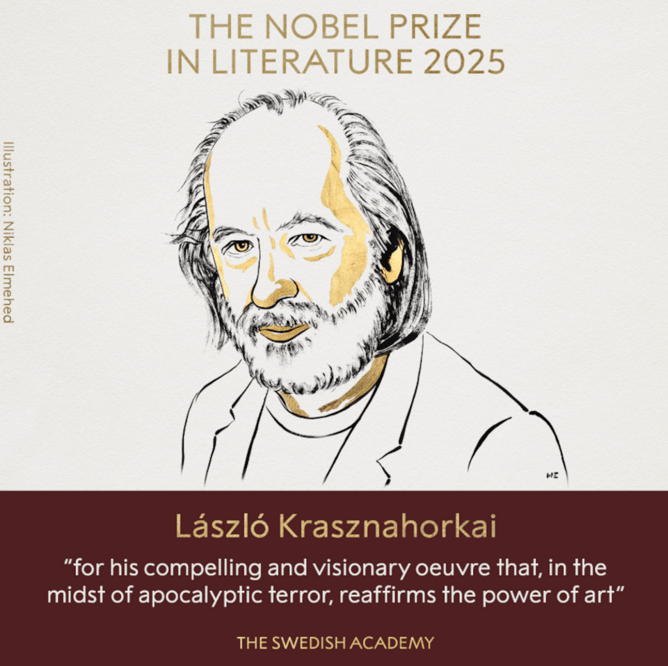 Στον Ούγγρο συγγραφέα Λάσλο Κρασναχορκάι απονεμήθηκε το Νόμπελ Λογοτεχνίας 2025.