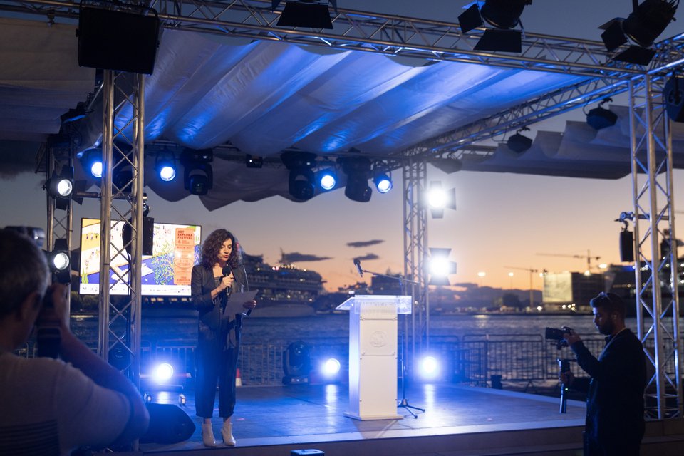 Η έναρξη του φεστιβάλ πραγματοποιήθηκε με εκατοντάδες επισκέπτες και διακεκριμένους προσκεκλημένους. Το πρόγραμμα της βραδιάς περιλάμβανε εντυπωσιακές παραστάσεις, όπως το «Bolero» του διεθνώς αναγνωρισμένου χορογράφου Αντώνη Φωνιαδάκη, μια μοναδική αναδημιουργία του αριστουργήματος του Ravel πάνω σε τραμπολίνα, καθώς και την «Spontaneous Symphony for Barrels» του Γιώργου Μωραΐτη, ένα συμμετοχικό μουσικό δρώμενο όπου βαρέλια λαδιού και χειροποίητα όργανα μετατράπηκαν σε κρουστά από τα χέρια του κοινού. Δεκάδες επισκέπτες συμμετείχαν ενεργά σε αυτή τη δημιουργική διαδικασία, μεταμορφώνοντας το λιμάνι σε μια συλλογική ορχήστρα. Το ζωντανό πρόγραμμα, από την Ελληνίδα επιμελήτρια Κατερίνα Τσέλου, παρουσίασε κορυφαίες φωνές από την Ελλάδα, τη Μεσόγειο και πέρα από αυτήν, κάνοντας την τέχνη προσβάσιμη σε όλους.