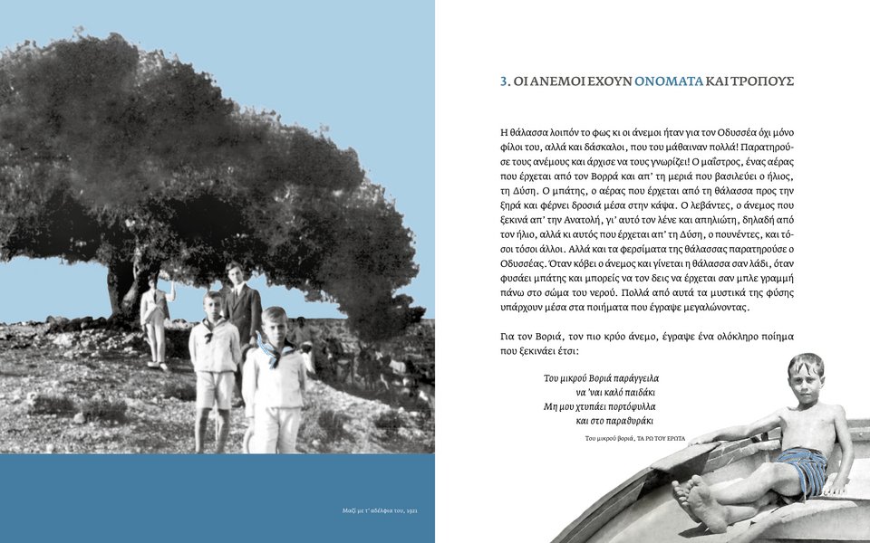 Γράφει η Ιουλίτα Ηλιοπούλου: «Εμπαιναν στη βάρκα πρωί πρωί και πήγαιναν στις αντικρινές παραλίες της Πελοποννήσου με την παχιά την άμμο και τα πεύκα. Και φυσούσε αέρας, γέμιζε όλο κόκκους χρυσούς τα μαλλιά, τα δωμάτια, τα όνειρα, τις λέξεις… Κι έτσι σιγά σιγά ο Οδυσσέας μεγάλωνε».