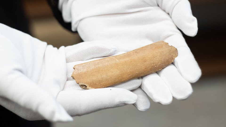 Ο Ρόμπερτ Νεντόμα, από το Πανεπιστήμιο της Βιέννης, κατέληξε στο συμπέρασμα ότι στο οστό είναι χαραγμένα σύμβολα που σήμερα αποκαλούνται ρούνοι του αρχαίου Φούθαρκ. Το αλφάβητο αυτό το χρησιμοποιούσαν οι γερμανόφωνοι λαοί της κεντρικής Ευρώπης από τον 2ο μέχρι τον 7ο αιώνα.
