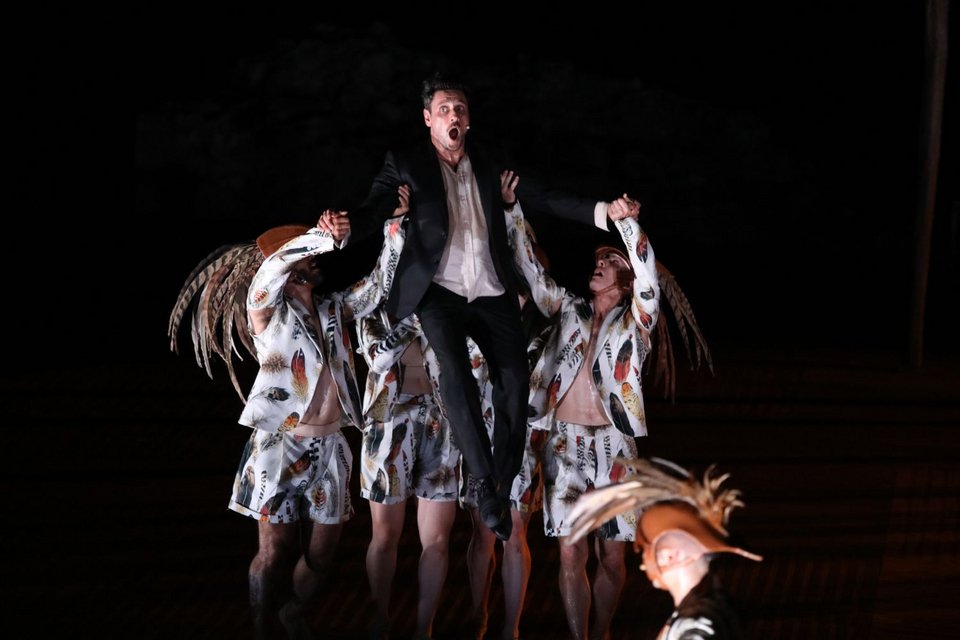 Η σκηνοθεσία του Άρη Μπινιάρη αξιοποιεί το στοιχείο της τελετουργίας με στόχο να αναδειχθούν οι αλληγορικές προεκτάσεις του αριστοφανικού έργου, ενώ η μουσική και η κίνηση τοποθετούν στο επίκεντρο της παράστασης την ανθρώπινη κατάσταση, τη μεταμόρφωση και την αποκατάσταση μιας κοσμικής δικαιοσύνης.