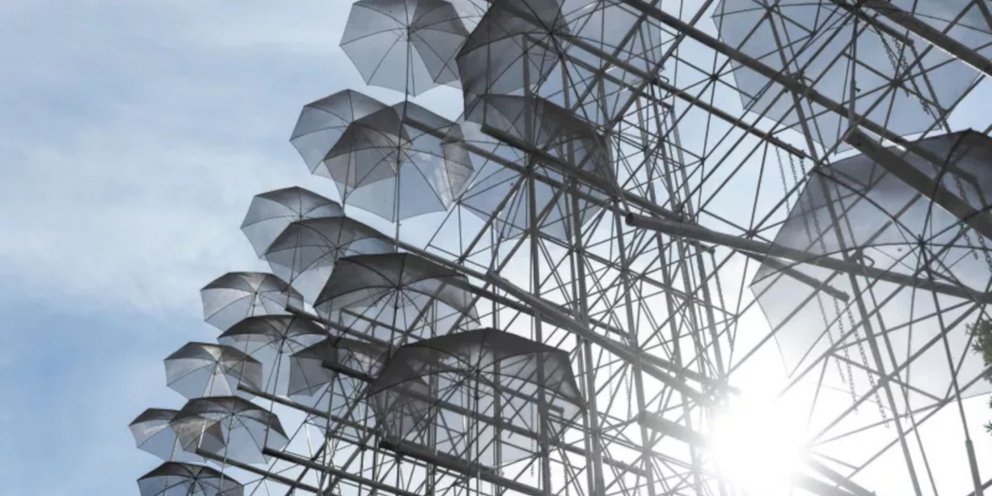 Μετά από πολύμηνες επισκευές, το υδροκινητικό έργο του Γιώργου Ζογγολόπουλου «Ομπρέλες» παραδόθηκε στο MOMUS-Μουσείο Σύγχρονης Τέχνης σε πλήρη λειτουργία.