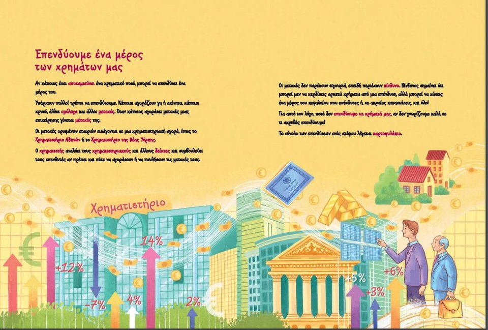 Με την καθοριστική βοήθεια της Διεύθυνσης Οικονομικής Ανάλυσης και Μελετών της Τράπεζας, δημιουργήθηκε ένα πρωτοποριακό για την Ελλάδα αλφαβητάρι με 124 βασικά λήμματα της οικονομικής και χρηματοοικονομικής επιστήμης - όσο σκέφτεται κανείς ότι ένα οικογενειακό παιχνίδι με ερωτήσεις από το βιβλίο θα έκανε τα παιδιά νικητές έναντι των ενηλίκων, σίγουρα εντυπωσιάζεται. Το πρωτότυπο λεξικό χρηματοοικονομικού αλφαβητισμού, που απευθύνεται σε μαθητές της πρωτοβάθμιας εκπαίδευσης, αποτελεί έκδοση του Κέντρου Πολιτισμού, Έρευνας και Τεκμηρίωσης της Τράπεζας της Ελλάδος. Χρηματιστηριακοί δείκτες, κλιματική αλλαγή, ψηφιακό χρήμα, λαϊκή αγορά -κάθε μορφή συναλλαγής έχει το δικό της λήμμα.