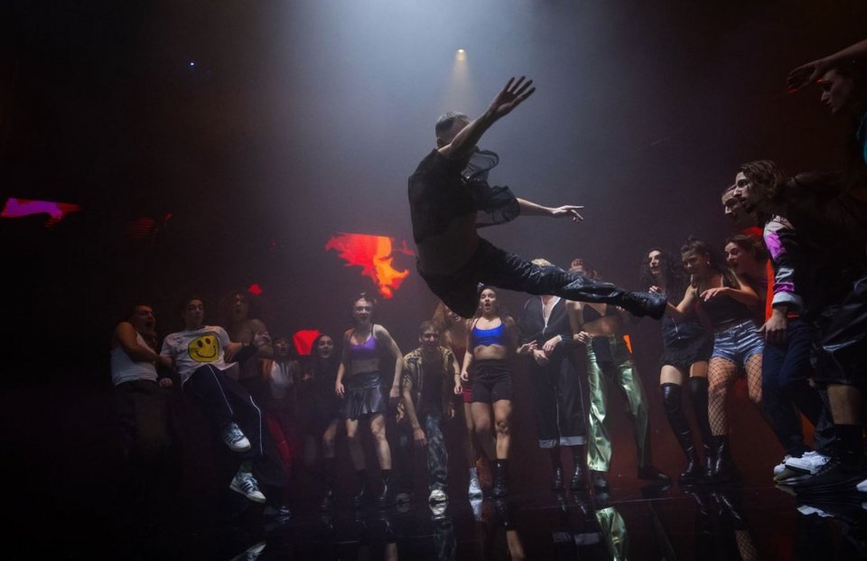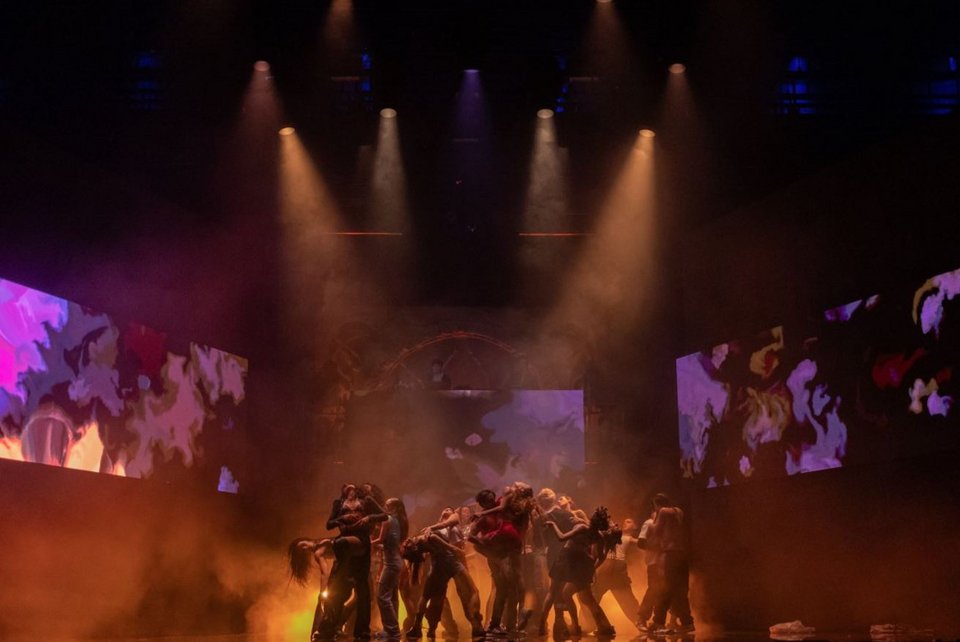 To rave party στην μεγάλη σκηνή της Στέγης του Ιδρύματος Ωνάση έχει αρχίσει ήδη και είναι οριακά εκκωφαντικό καθώς μπαίνουμε για να καθίσουμε στις θέσεις μας. «Οξυγόνο» και 23 νέα παιδιά, χορευτές και ηθοποιοί χορεύουν ξέφρενα κάτω από το τοτέμ, δηλαδή τα decks όπου το δίδυμο dj’s Reign of Time ιερουργούν κάτω από δεσμίδες μοβ φωτός.
