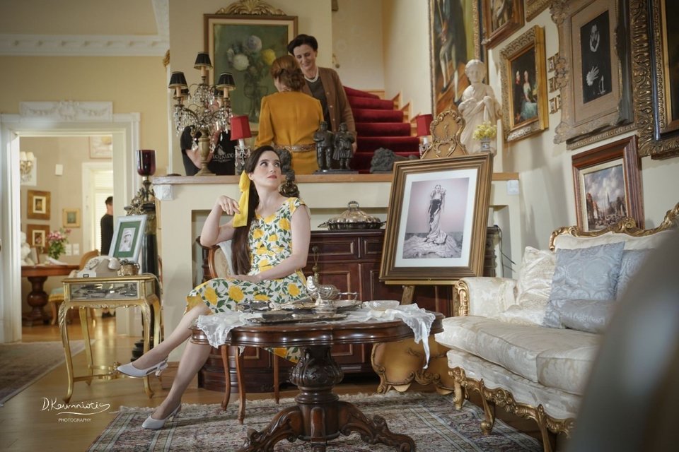 Ενα αστικό σαλόνι, με έπιπλα και αντικείμενα της Κυβέλης που έχει παραχωρήσει ειδικά για τη σειρά η δισέγγονή της.