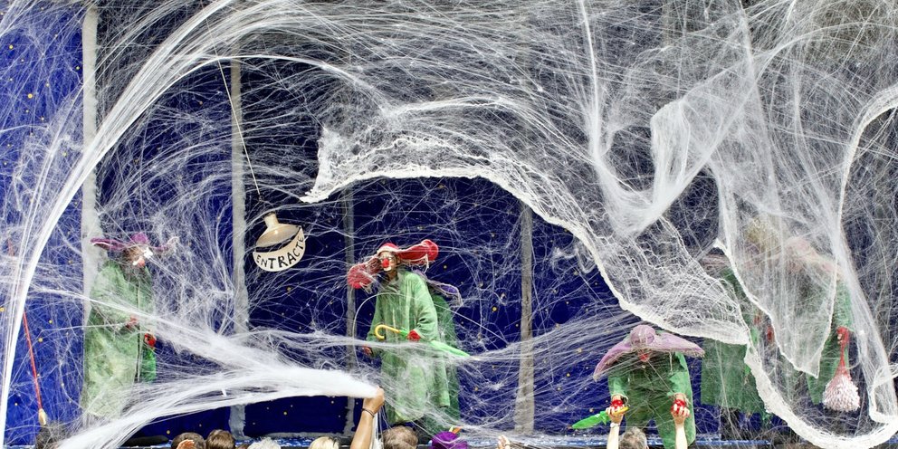Πλοία που ταξιδεύουν σε θάλασσες από εκτυφλωτική ομίχλη, γιγάντιοι ιστοί αράχνης τυλίγουν το θέατρο – και με τη βοήθεια του κοινού, ομπρέλες στροβιλίζουν στον αέρα καταβρέχοντας, φυσαλίδες αιωρούνται, κλόουν ίπτανται κυνηγώντας τες, σκούπες σκουπίζουν μόνες τους, παλτά «ζωντανεύουν» και γίνονται άνθρωποι, μπάλες διογκώνονται πετώντας, ένα «Βόρειο Σέλας» εμφανίζεται σε απόσταση αναπνοής, λαμπερά φεγγάρια και αστέρια πλαισιώνουν έναν απέραντο, νοσταλγικό, νυχτερινό, έναστρο ουρανό.