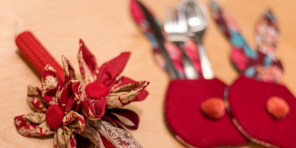 Στο πωλητήριο του Εθνικού θα βρούμε πασχαλινές δημιουργίες, όπως υφασμάτινα λαγουδάκια με θήκη για μαχαιροπίρουνα για το πασχαλινό τραπέζι.