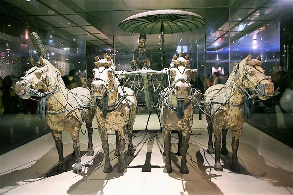 Το 2013, σε άρθρο του περί επιρροής της ελληνιστικής τέχνης στην πολιτιστική προσφορά των Κινέζων αυτοκρατόρων, ο καθηγητής Ιστορίας της ανατολικο-ασιατικής τέχνης του Πανεπιστημίου τη Βιέννης, Lukas Nickel, σημειώνει ότι «η γλυπτική ως καλλιτεχνικό μέσο χρησιμοποιήθηκε ευρέως στις τέχνες της Ελλάδας και της ελληνιστικής Ανατολής, αλλά έπαιξε μικρό ρόλο στην αρχαία ανατολική Ασία. Αυτό άλλαξε σημαντικά με τον πρώτο Αυτοκράτορα της Κίνας, ο οποίος σηματοδότησε την άνοδό του στο θρόνο το 221 π.Χ. με την ανέγερση γιγάντιων χάλκινων γλυπτών έξω από το παλάτι του».