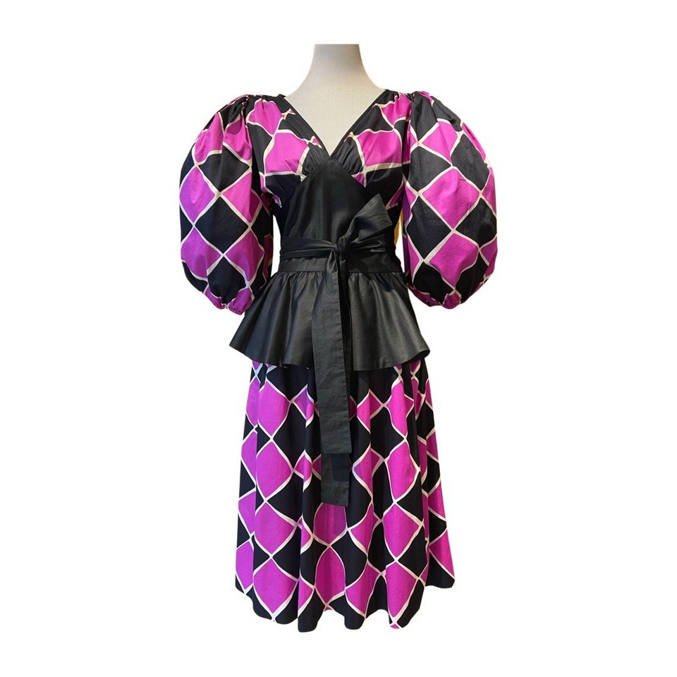 «Είναι ένα σύνολο τεσσάρων κομματιών, φούστα από δύο layers, γιλέκο και πουκάμισο. Το δημιούργησε το 1977, στην τρίτη του συλλογή. Με αυτήν έκανε πρώτη φορά εξαγωγή στην Αμερική. Είναι χαρακτηριστικό ότι μέσα, στην ετικέτα, φέρει την ένδειξη "Saaks, 5th Avenue", όπως συνέβαινε εκείνη την εποχή όταν διαπραγματεύονταν τα μεγάλα καταστήματα στη Νέα Υόρκη την αγορά υψηλής ραπτικής» μου εξηγεί ο Γιώργος Μo. Ας δούμε όμως κάποιες από τις επτά δημιουργίες του που ταξίδεψαν στη Χιλή:
