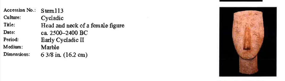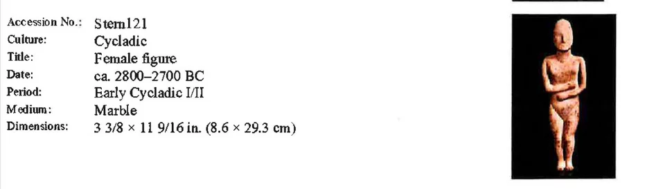 Μάλιστα το μεγάλο ειδώλιο (φωτογραφία παραπάνω) θα επιστραφεί τον Ιανουάριο του 2034. Στην αίθουσα που θα εκτίθενται τα γλυπτά της συλλογής Στερν θα υπάρχει υποχρεωτικά η εξής αναγραφή: « HELLENIC REPUBLIC - MINISTRY OF CULTURE AND SPORTS MUSEUM OF CYCLADIC ART ATHENS LOAN OF CYCLADIC ART TO THE MET.»