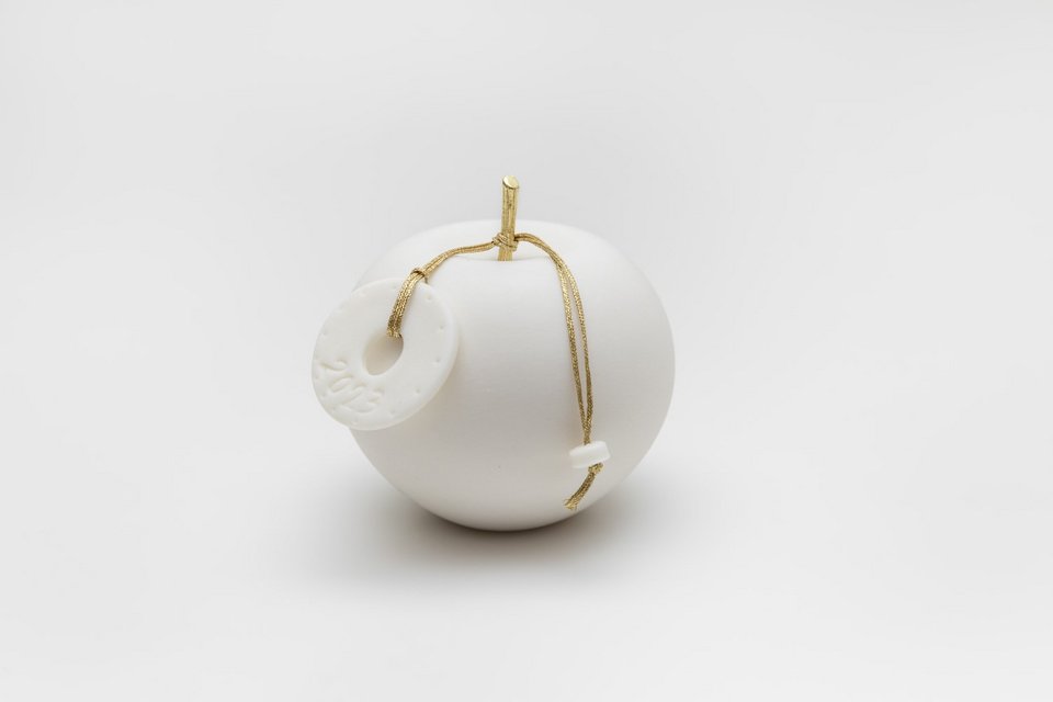 Εμπνευσμένο από το μήλο που κρατά στο χέρι η Κόρη Ακρ. 677, γνωστή ως «Κόρη με το μήλο». Το μήλο, φρούτο που συνδέεται με τον έρωτα, το γάμο και τη γονιμότητα, η Κόρη το φέρνει ως προσφορά στη θεά Αθηνά. Το έκθεμα χρονολογείται γύρω στο 570-560 π.Χ. και βρίσκεται στην αίθουσα της αρχαϊκής Ακρόπολης.| Σχεδιαστής: Τρεις Γραμμές